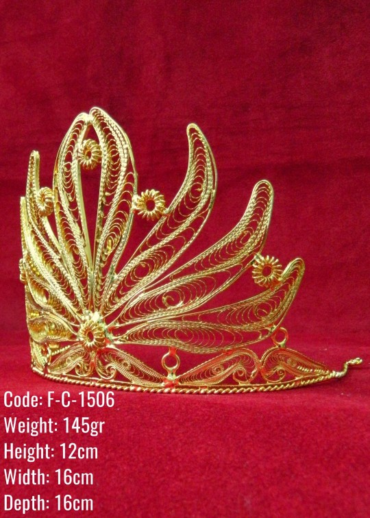 Bakır Telkari El Emeği Orijinal Altın Kaplama Taç - F-C-1506